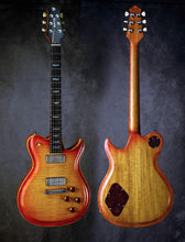 This stunning Tulsa features a lightweight, chambered body of white African limba with a beautiful curly maple top. Both front and back have been contoured in the traditional German-carve manner—giving the instrument exotic lines and making it oh-so comfortable to hold. The matching limba neck is carved in a flatter vintage c shape like a 1960 sunburst burst Les Paul.