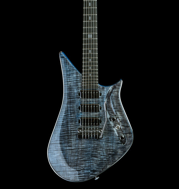 - Blue: the deep inspirational dive of creativity, opening new horizons of unlimited passion in combination with the rare book-matched flamed maple top