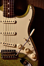 - Finish: New Old Stock House of Kolor Mini Yellow Lime Rainbow Flake, topped with '50s recipe nitrocellulose lacquer, lightly aged with heavy weather checking