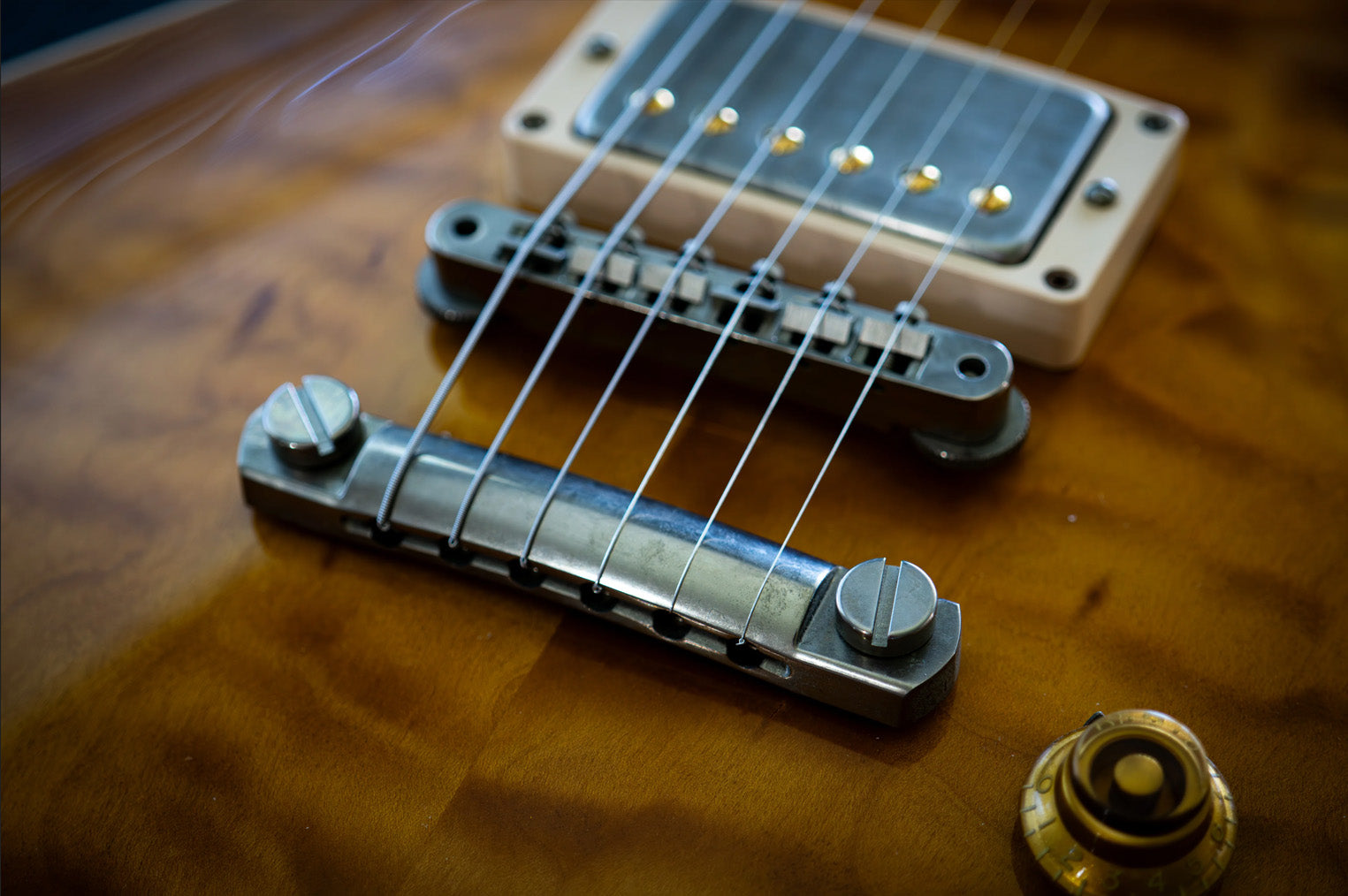 The hardware is carefully selected to complement the guitar's tonal characteristics. An ABR-1 style bridge and lightweight tailpiece provide excellent sustain and intonation stability. The Top Hat knobs offer precise control, while the Grover milk bottle tuners ensure accurate and stable tuning.